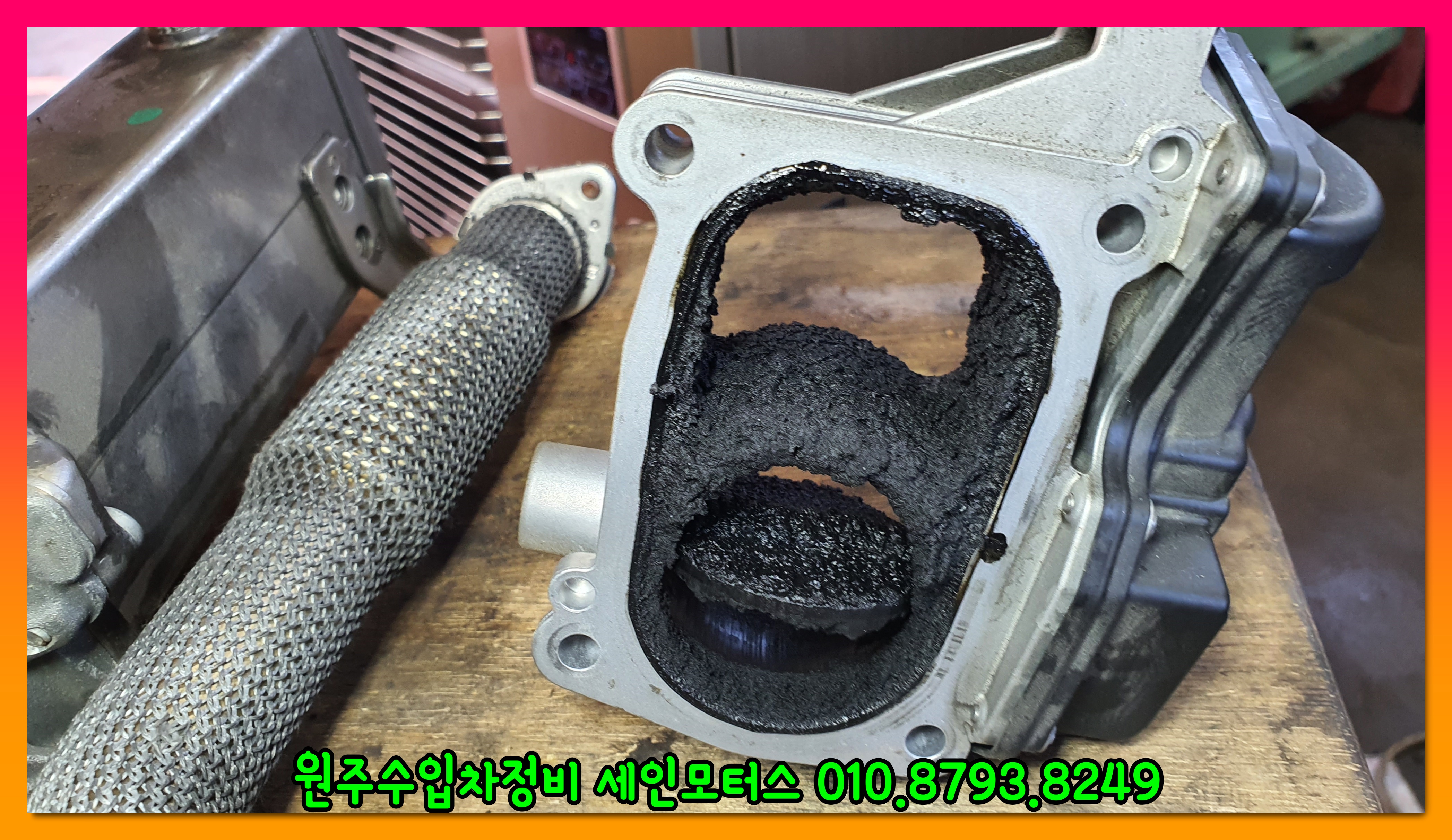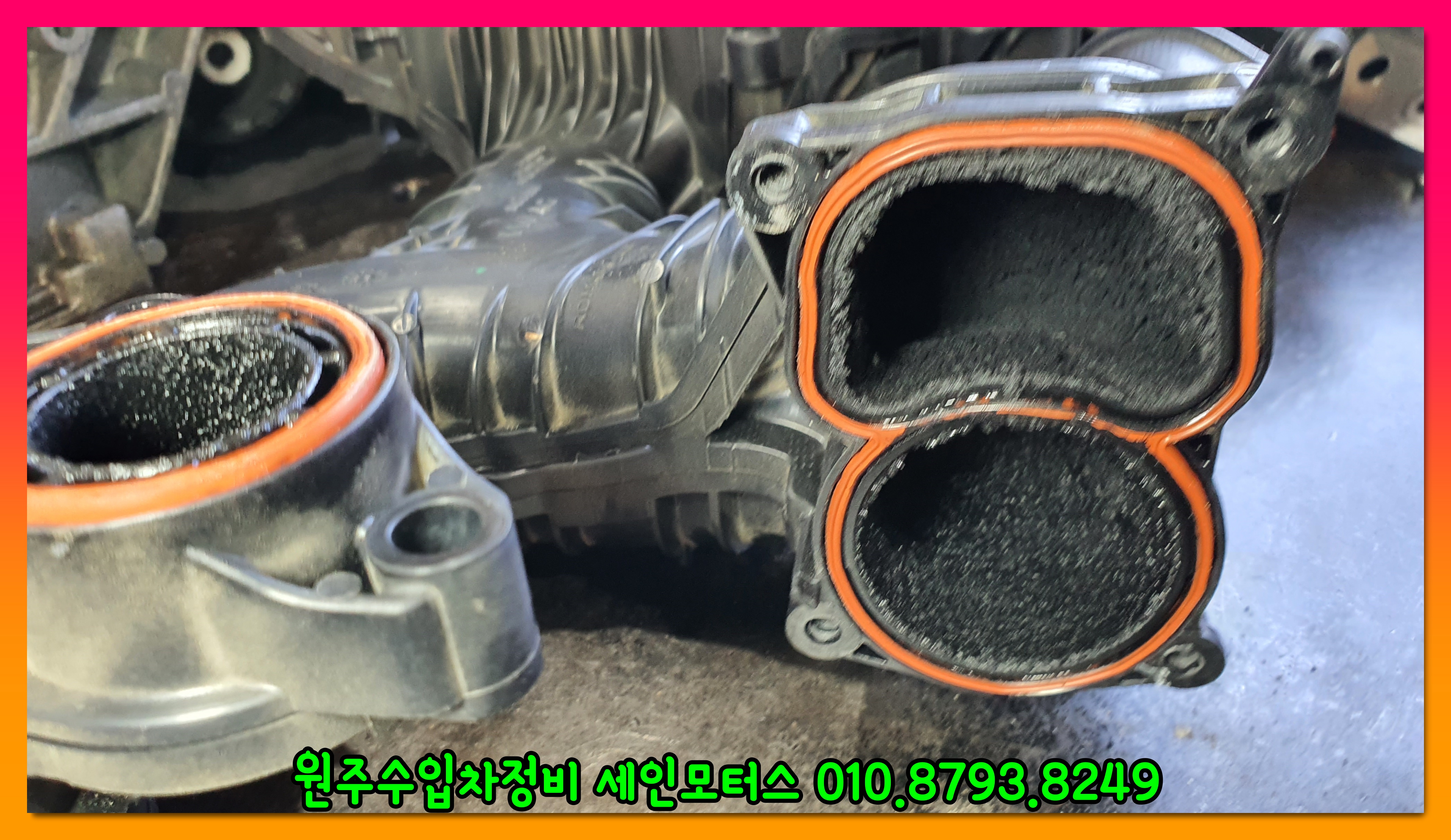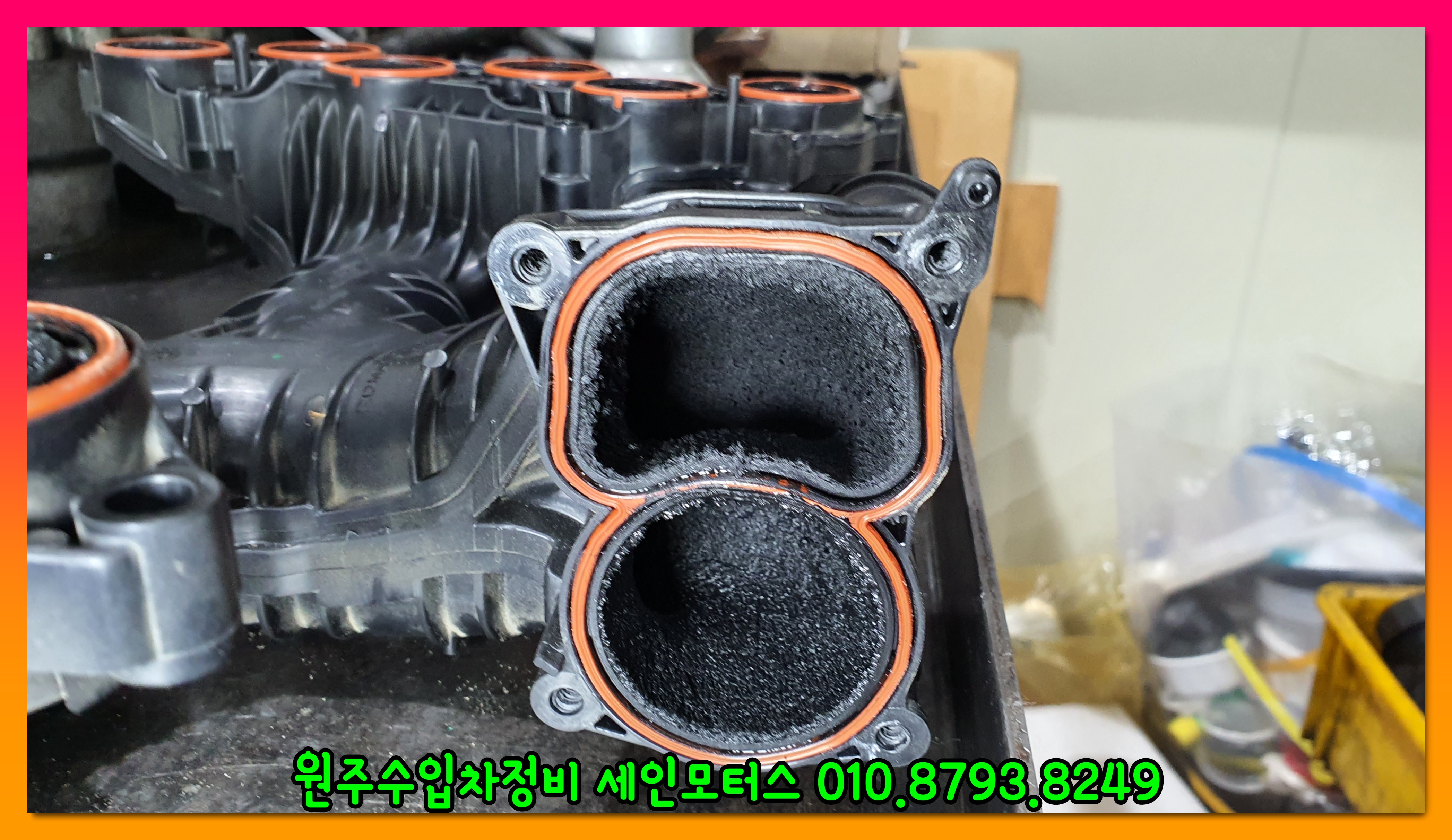 위 사진은 흡기관련 부품이다. 부품에 카본이 엄청나게 쌓여있는 것을 확인할 수 있다.
