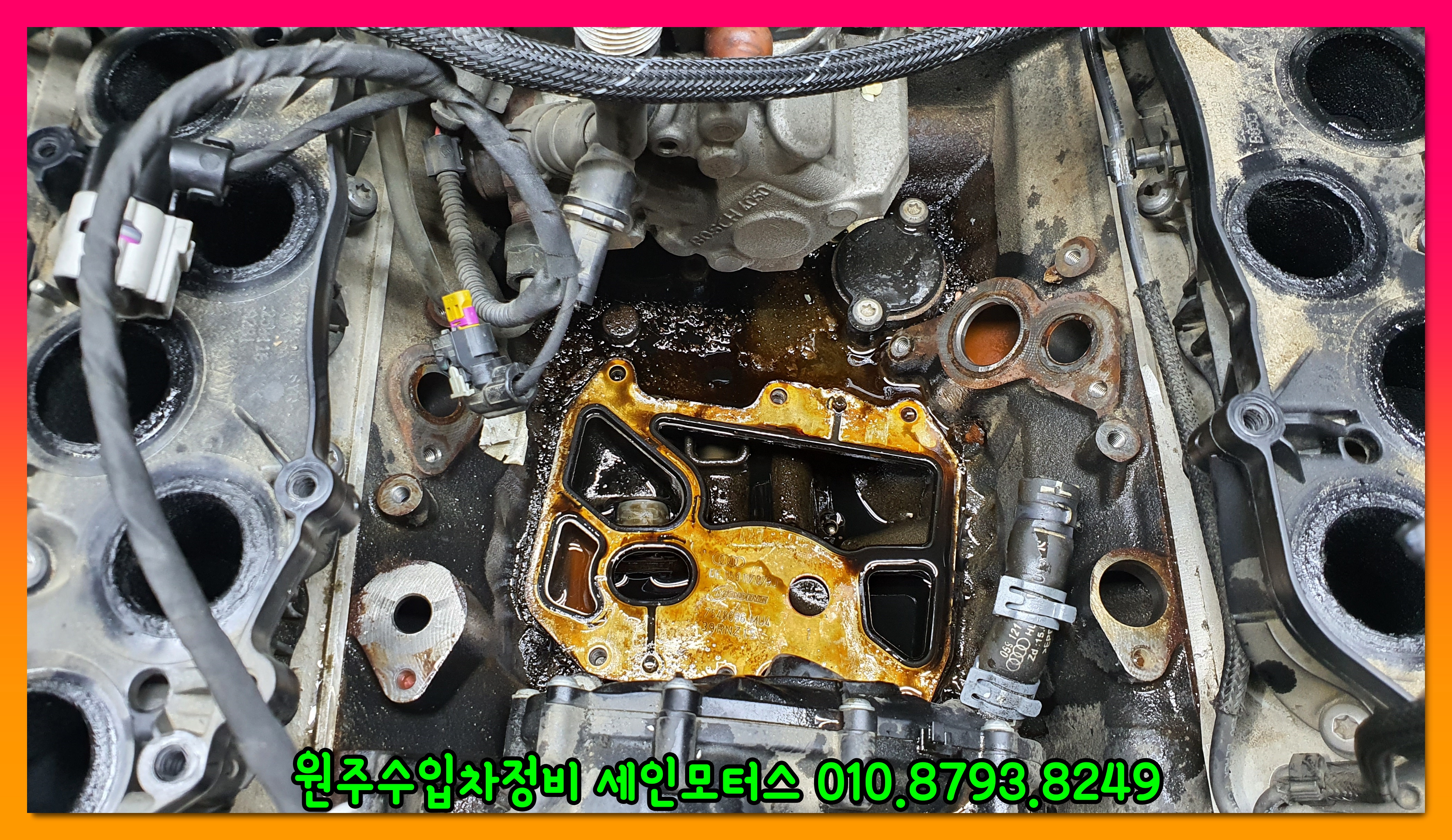 아우디 엔진들의 특징이 여기서 냉각수누수와 엔진오일 누유가 대부분 발생한다.