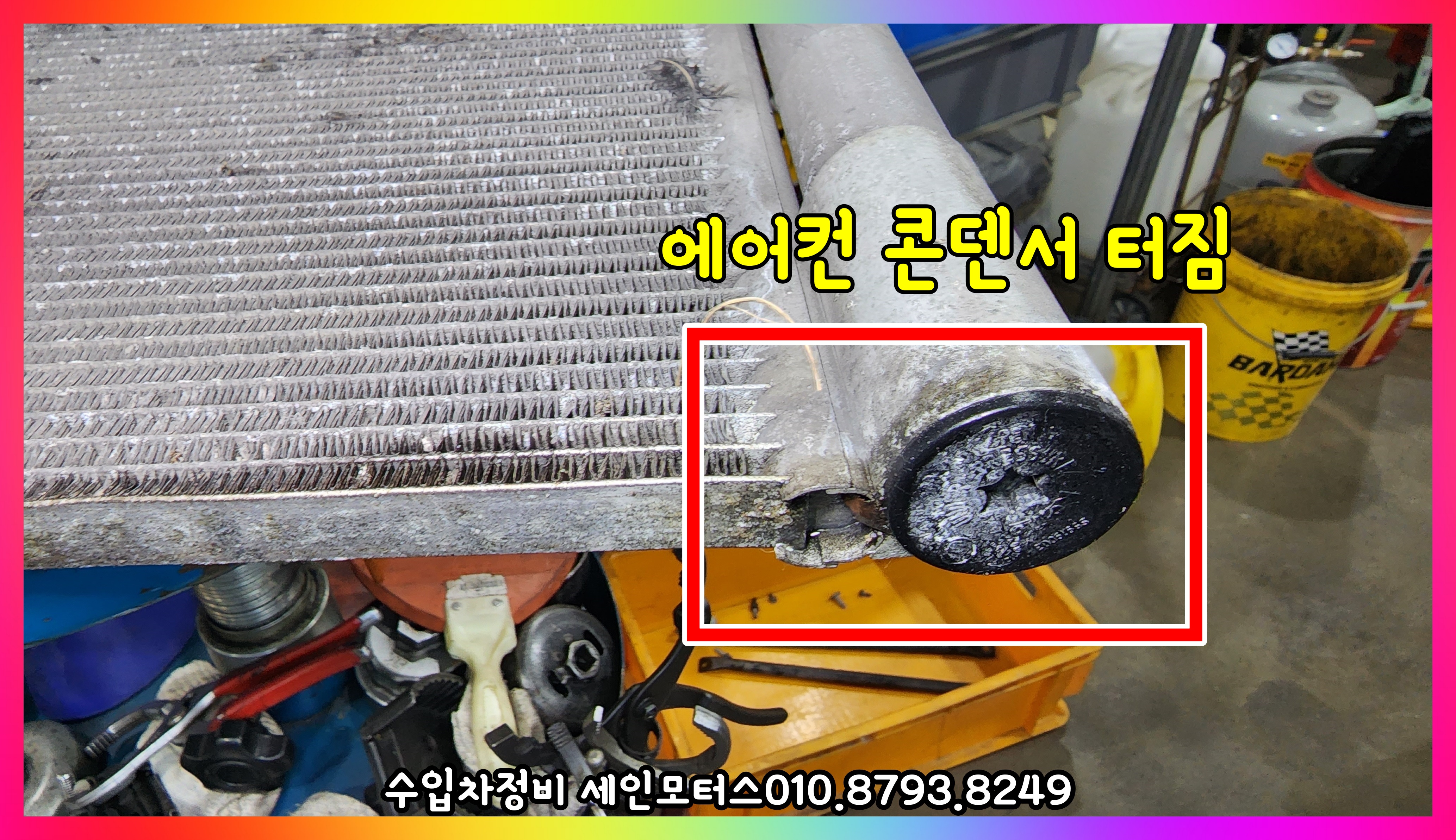 여기에 에어컨 콘덴서도 터져서 에어컨 가스가 누설이 되면서 에어컨도 작동이 되지 않았다.